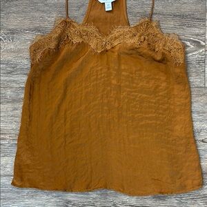 Nine West Burnt Gold Lace Silk Camisole ideal for layering Women's Size XS
