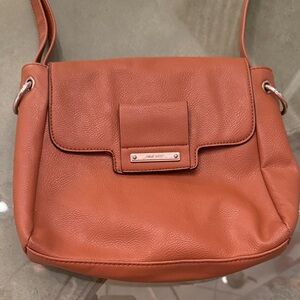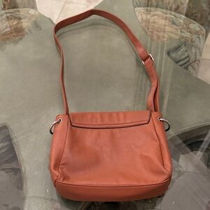 Elegant burnt orange shoulder bag. Features adjustable strap and sleek design. Perfect for daily wear.