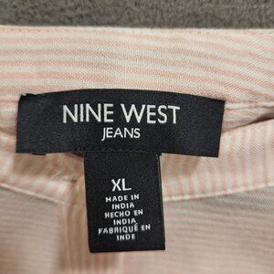 Nine West Button Top Women's Size XL Stripe Scoop Neck Hi Low Hem Office Casual