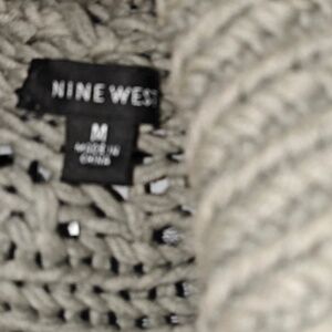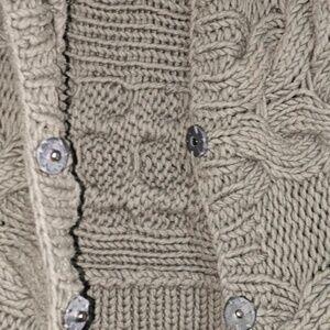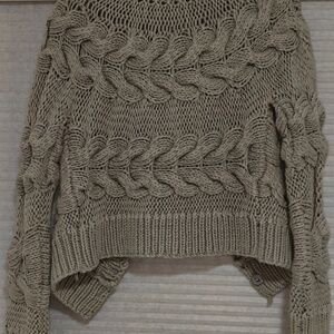 Chunky cable-knit snap closure, waist-length sweater in good condition.