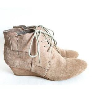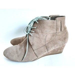 Nine West Camel Tan Wedge Heel Bootie Womens Size 9.5 Suede Ankle Boot Preppy