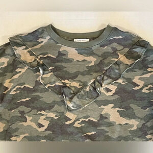 Nine West Camouflage Long Sleeve Ruffle Sweatshirt Size Small