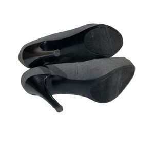 Cute grey ultra high 4.5” heels with platform peep toe design in size 5.5