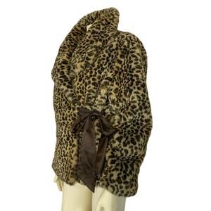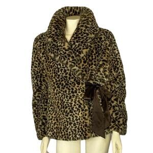 Nine West Catty coat leopard faux print, large wrap ribbon closure size large