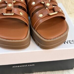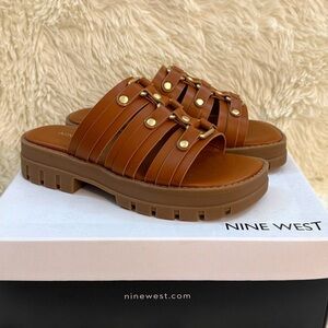 Nine West Cazz Fisherman Platform Slide Sandals Brown NIB
