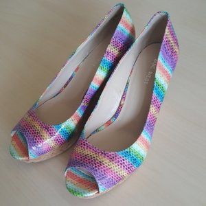 Nine West "Cheerful" Peep Toe Cork Wedges 7M