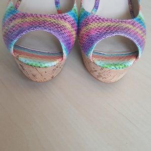 Nine West "Cheerful" Peep Toe Cork Wedges Size 7M.