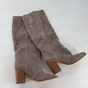 Nine West Chicke Knee High Boots 9.5 Gray Beige Taupe Suede NWOT Heel Tall Prep