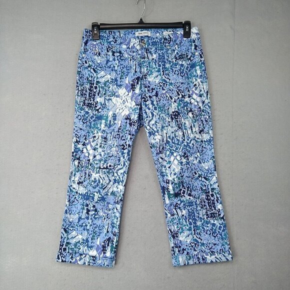 Nine West Chrystie Capri Jeans Womens 8 Blue Allover Print Crop Comfort Spring