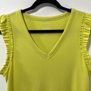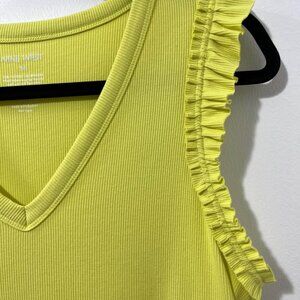 Nine West Citron Ribbed V-Neck Sleeveless Ruffle Trim Top [size M]