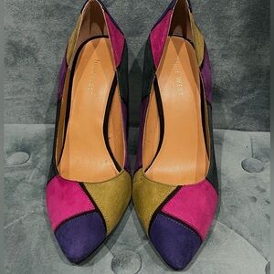 Indigo, magenta & sage green. In good condition, very comfy, hardly worn.