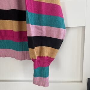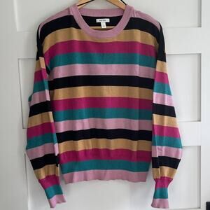 Nine West Colorblock Sparkle Stripe Disco Crewneck Sweater Size Large