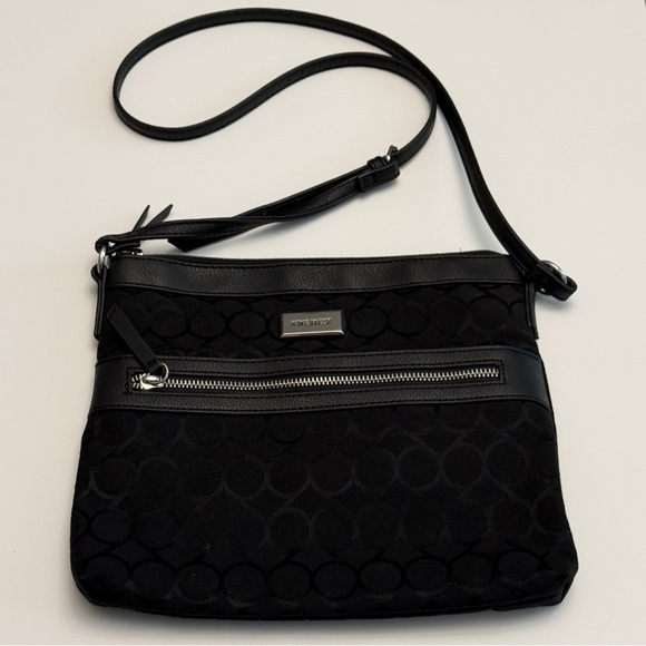 Stylish black crossbody bag perfect for any occasion. Features a sleek design with a convenient zipper pocket.