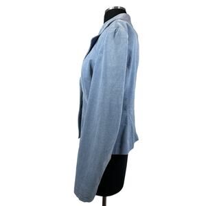 Nine West Corduroy Collared Blazer Jacket Lined Slate Light Blue Career Size 10