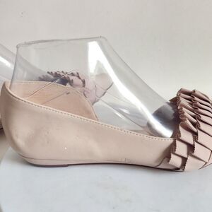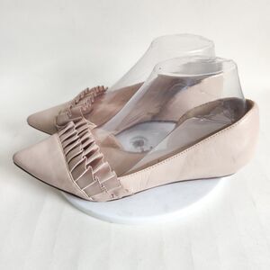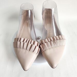 These Nine West cream flats offer a chic and minimalist design, highlighted by elegant pleated detailing across the upper. Crafted for comfort and style, they are perfect for both casual and formal occasions.