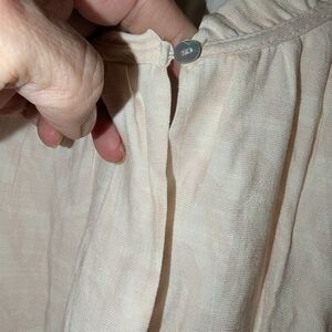This casual cream sundress by Nine West features a flattering wrap design with a tiered midi-length skirt. The dress is styled with a crew neck and charming puff 3/4 sleeves, perfect for a relaxed yet stylish look.