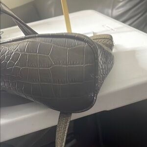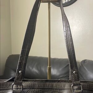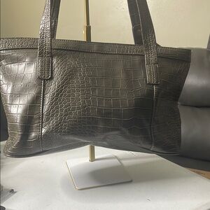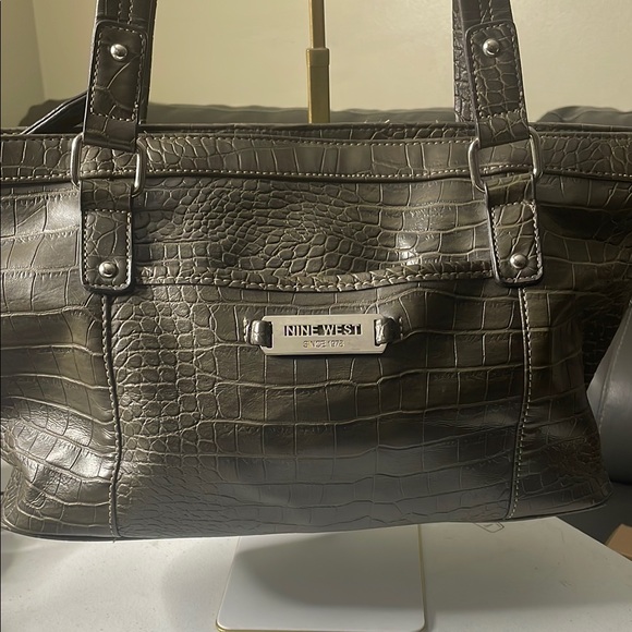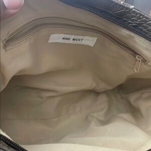 Stylish croc-embossed tote bag by Nine West. Features a sleek black design. Perfect for everyday use.