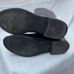 Gently used, Size 6 Nine West Cromie riding boot. Black with brown accents. Normal wear and tear for a gently used, well cared for boot. Worn less than a dozen times.