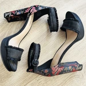 Nine West Daranita Jacquard Open Toe Ankle Wrap Heels Sz 8.5