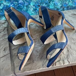 Chic denim blue heels with stylish ankle straps. Ideal for versatile wear.