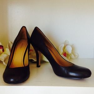 Nine West dark brown leather heels. Worn once, like brand new! Very comfortable, true to size, beautiful rich leather.