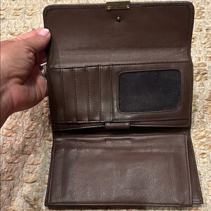 Chic dark brown leather wallet by Nine West. Sleek and stylish design. Great condition