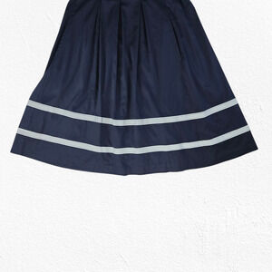 Crisp white horizontal stripes near the hem for a nautical-inspired finish