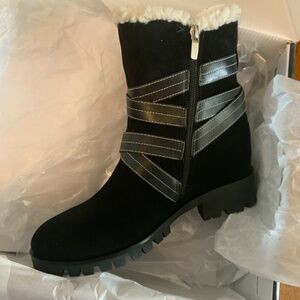 Nine West Davyd Wedge Buckle Booties Black Suede Leather Women's Winter Boot 8.5