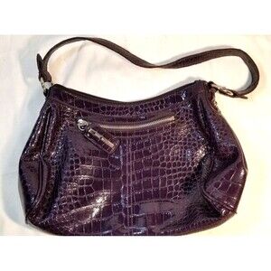 Nine West Deep Grape Purple Faux Alligator Leather Skin Purse/Bag