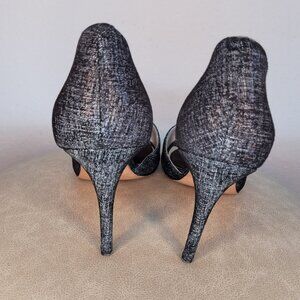 Step into elegance with these Nine West Dorey peep toe pumps, designed in a striking textured grey finish that pairs perfectly with office wear or evening looks. These sleek heels feature a stylish d’Orsay cut with open sides for added sophistication, and I added soft high-quality suede toe pads for all-day comfort. A chic, streamlined silhouette and lightly metallic fabric make them a subtle yet statement-worthy addition to your wardrobe.