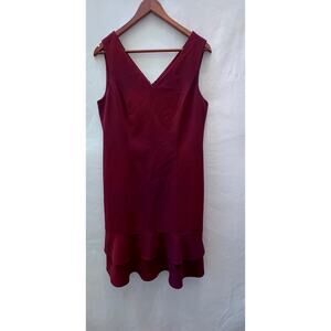 Nine West Double Ruffle Hem Career Women's Dress Knee-Length Red Sleeveless Sz 8
