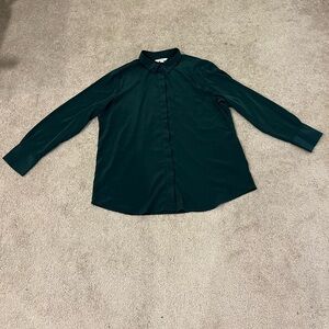 In great shape! Only worn a few times! Lightweight materiel button down shirt! Pretty dark green color! Has front pocket! Sleeves can be rolled up to a shorter length! Perfect for work or a night out! Offers always welcome!