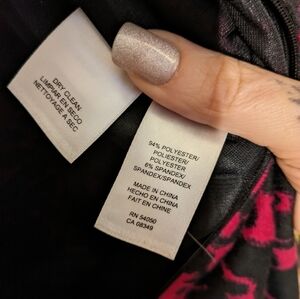 Size 8 light weight cap sleeve Fuchsia and golden pattern black dress