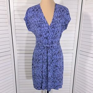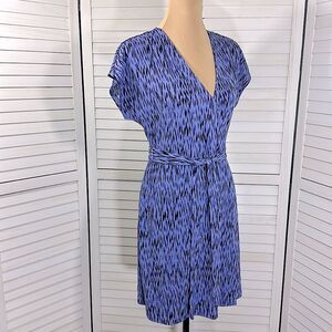 Nine West Dress Size Medium Blue Patterned V-Neck Dress