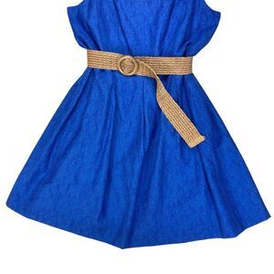- Description: Nine West Dress Womens 16W Blue Belted Fit and Flare Western Cowboy Summer Vacay