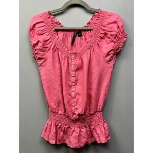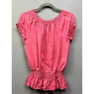 Nine West Dress Women’s Top Size Small Pink Smock Elastic Waist Pearl snap
