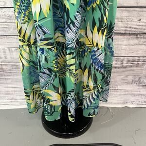 Nine West Dress size 8 Long Maxi Green Yellow Floral Tropical Wedding Hawaiian