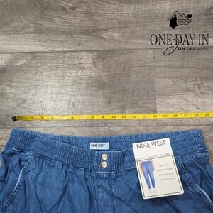 These azure jogger pants capture the effortless sophistication of modern femininity, crafted from luxurious lyocell that drapes like liquid moonlight against the skin. Nine West has created a garment that whispers of casual elegance, where comfort meets the refined sensibilities of the contemporary woman. New with tags, they promise the untold possibilities of fresh beginnings and graceful movement.