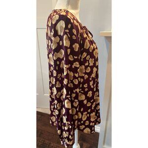 Nine West eggplant and gold animal print, tasseled tie neck, long full sleeves. Women's size XL, measures 23.5" armpit to armpit, 26" length. Excellent condition!