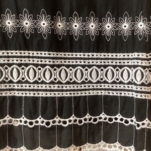 This wear-everywhere fit and flare A-line skirt from Nine West is detailed with beautiful embroidery and a feminine scallop hem. Airy cotton fabric brings sunny-day ease. Lined. 100% cotton. Hand wash. Line dry. 23.5” long.