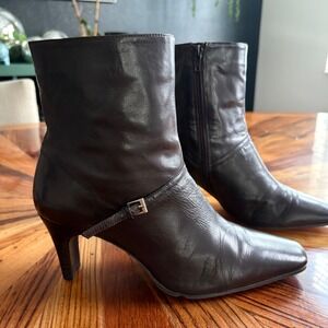 Nine West Emelia Black Leather Ankle Boots Square Toe Heel Buckle 9.5 M