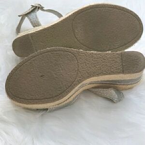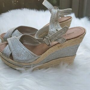 Worn Once! Nine West silver glitter and rope braid wedge espadrilles.