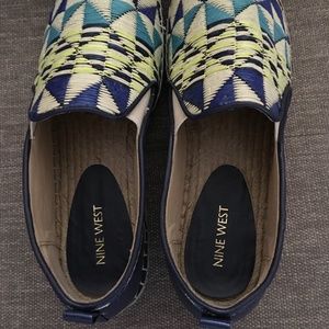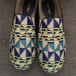 Nine west espadrilles worn once in great condition. Straw geometric pattern. Very cute. Bottom is mostly dirty, still lots and lots wear left. Multicolor.