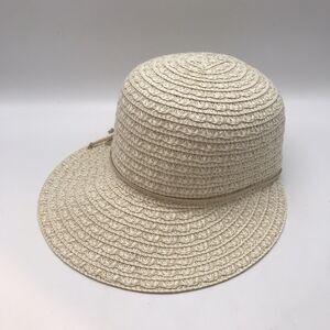 Nine West Face Framer, Straw Sun Hat. Women's OSFM, Scalloped with Tan Bow Band, Packable Wide Brim for Summer Vacation or Beach Party. One Size Fits Most Stretch, with 3.5 inch Brim. Only worn one time.