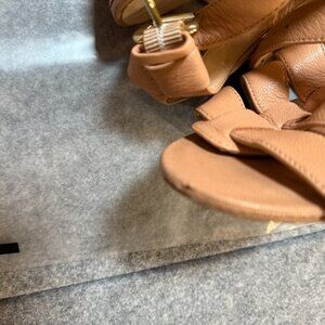 Nine West Farfalla Womens US 9 M Sandals Tan Leather Ankle T-Strap Wedge Heel