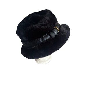 Nine West Faux Fur Black Bucket Hat Urban Casual Outdoor Winter