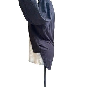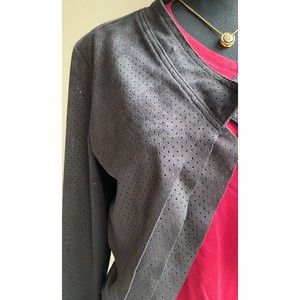 Brand: Nine West. Women's blazer, faux leather, open front, asymmetrical, perforated, designers look, lagenlook. Size: M. Color: Black, Condition: brand new, with tags.
