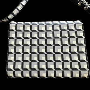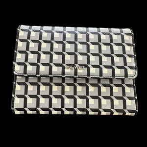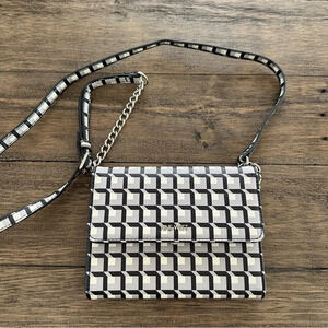 Nine West Faux Leather Geo Check Print Crossbody bag Purse Black Gray Work Chain