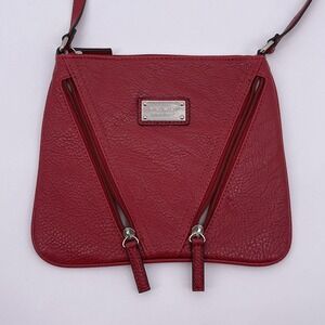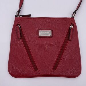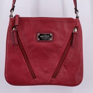 Nine West Faux Leather Red Crossbody Purse Adjustable Long Strap Zipper Pockets