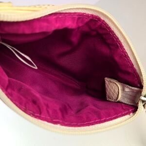 This Nine West Faux Leather Wristlet is a stylish and compact accessory perfect for women on the go. The geometric pattern in orange, white, and gray adds a colorful touch to any outfit. The rectangular shape and small size make it ideal for carrying essentials while the zip closure and wrist strap handle provide convenience and security. The pebbled finish and silver hardware add a touch of sophistication to this chic clutch, making it a must-have for any fashion-forward individual.